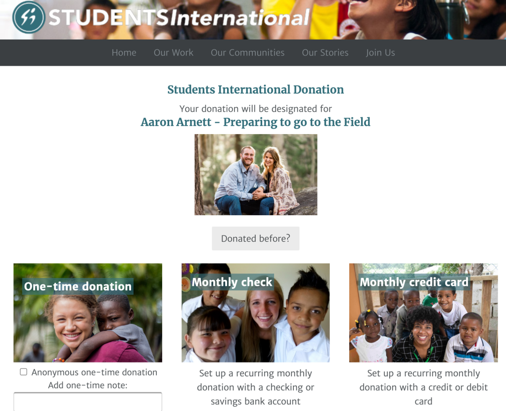 Thank you for answering the call to our ministry in Guatemala. By clicking the button above you will be taken to our Students International donation page (which will look the example on this page).